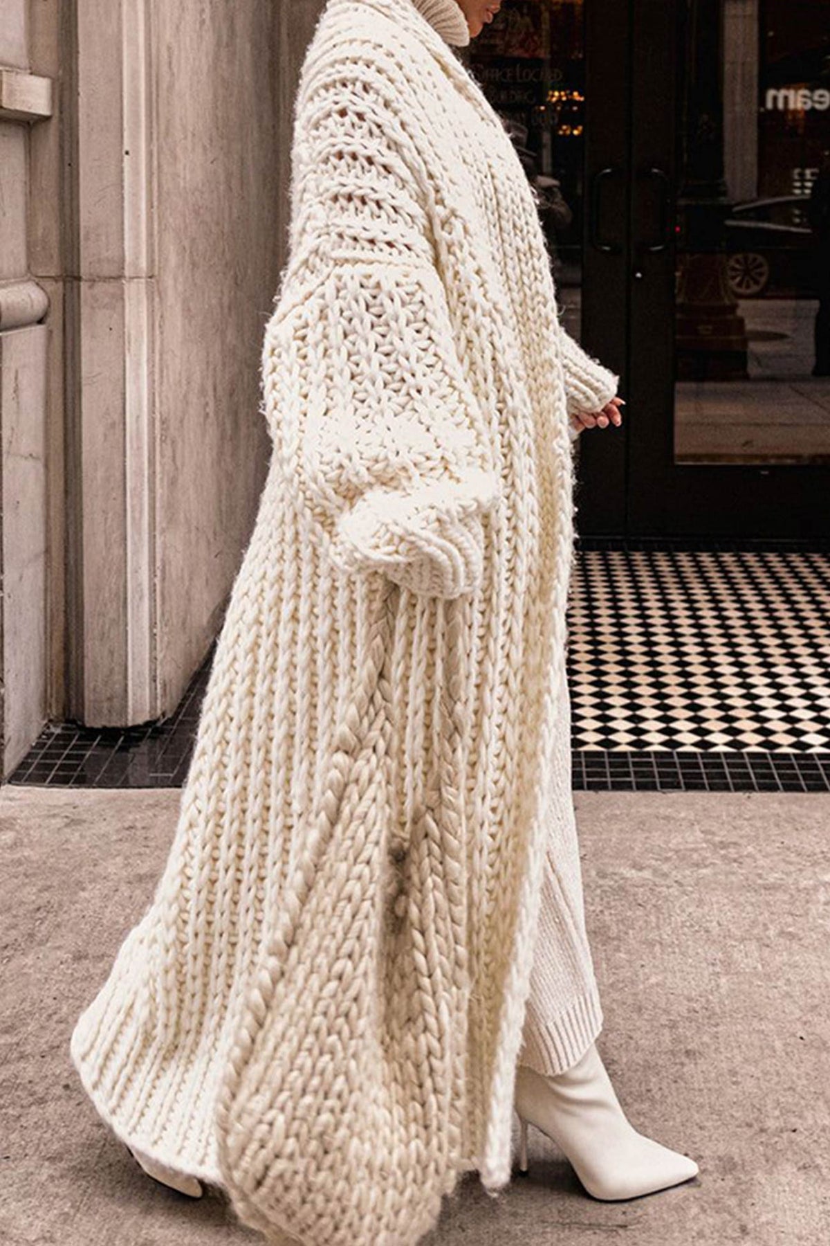 This women's long knitted cardigan offers the perfect balance of warmth and casual style, making it an ideal layering piece for everyday wear. Crafted with thick needle knitting, this loose-fit cardigan provides a cozy, relaxed silhouette that’s perfect for staying comfortable all day. Whether you're layering it over a tee for casual outings or using it as a go-to cozy piece at home, this cardigan adds versatility to your wardrobe. Stay snug and stylish throughout the cooler seasons with this must-have cardigan.